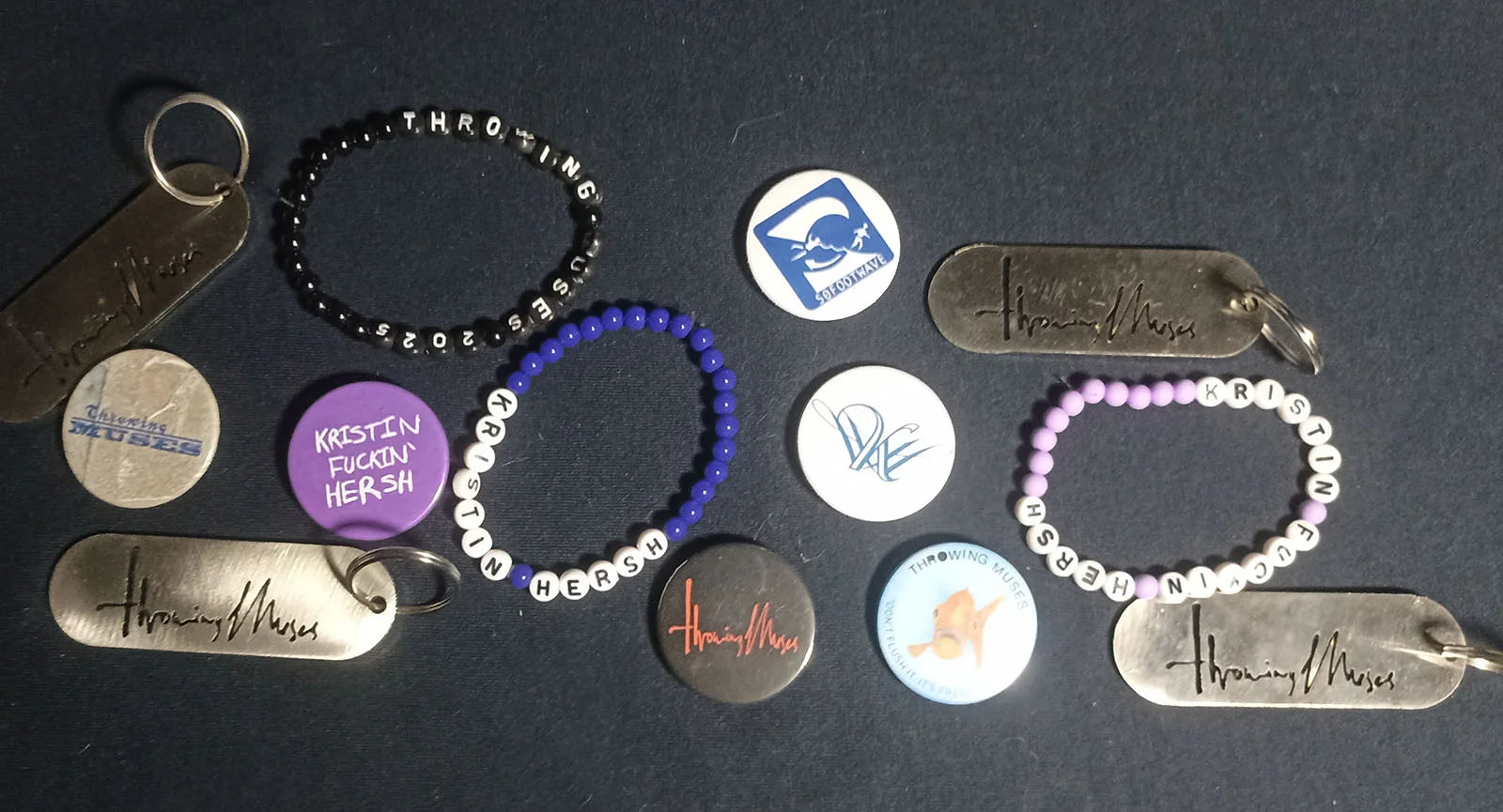 - Badges - 38mm metal backed badges celebrating Throwing Muses, Kristin Hersh, and 50 Foot Wave