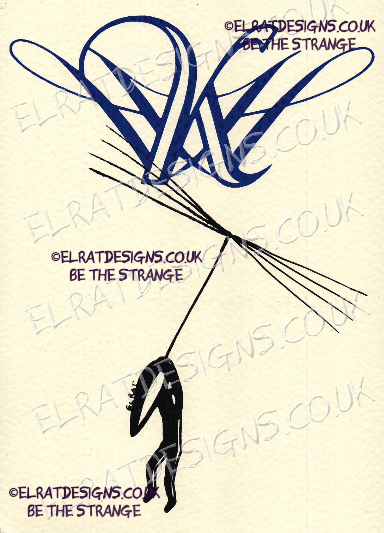When this song first came out, it really spoke to me, I had been thinking about this idea of The One Hersh's music, and how it pulls us into its orbit in the chaos, I had already drawn that as a picture, (it was called "Steering connections in the Chaos" and was a follow on to another picture, called "Connections in the chaos") but when this arrived, I thought about dandelion seeds, and how they float through the air, and how Hersh's music can carry us off. This album in particular is filled with hope (I think anyway) So this started with the classic KH logo, In Blue, and a hand drawn dandelion seed silhouette, with a human figure hanging onto the bottom (Someone mistook it for a dog... lol) in black. Dandelions are supposedly weeds, and weeds are only flowers that anyone can grow. People try to get rid of them, but they're the Sun, Moon and stars all in one, they're also the first flowers kids pick for their mums. They're beautiful and so perfectly Hersh