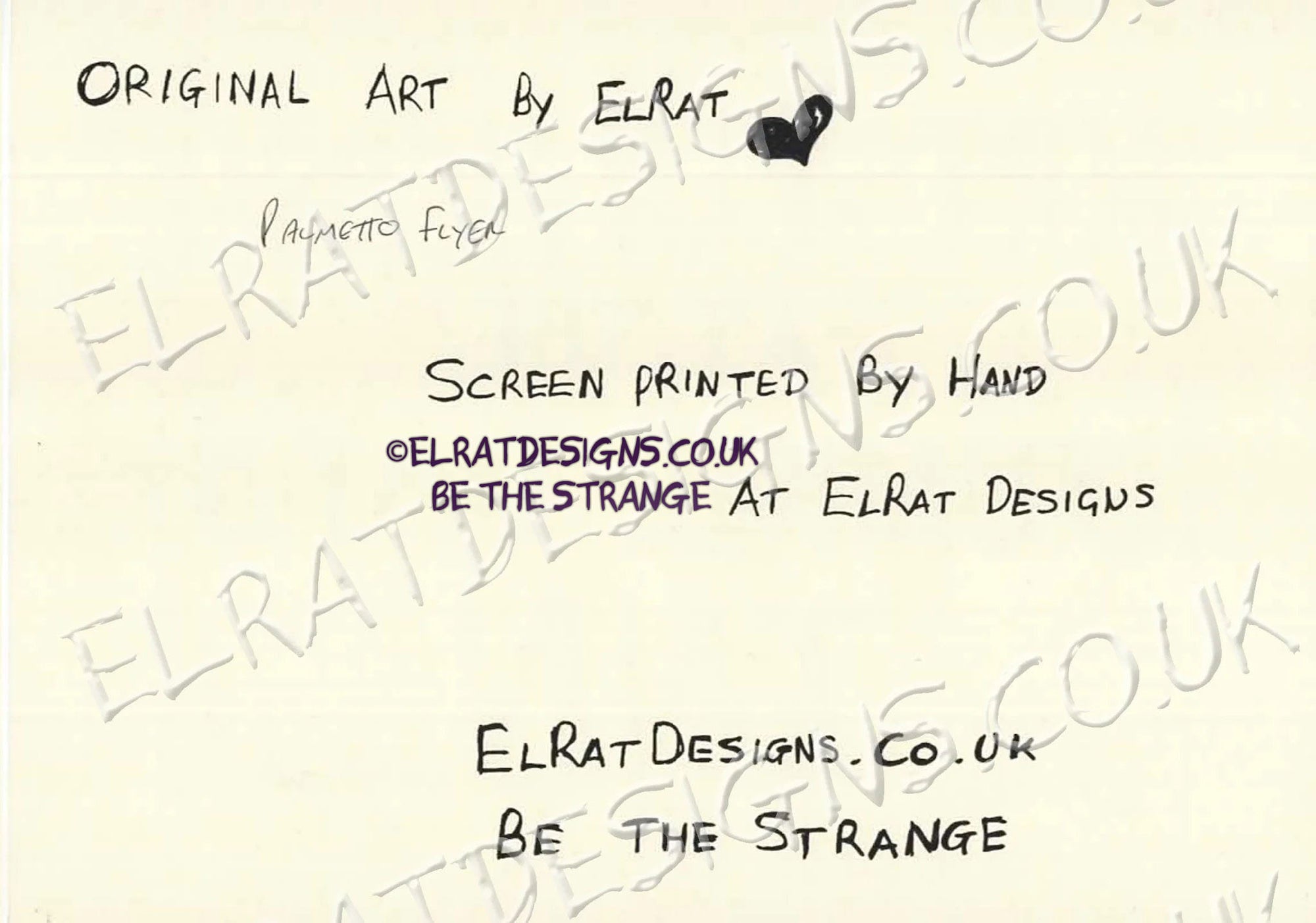 I am not some faceless company, I am a real person. Every print is hand pulled by me, using eco friendly water based ink. You can always speak to me at any point before, during or after your order is complete, and all items come with a money back guarantee. Every order ships in plastic-free packaging, I usually have some extras hanging around - test prints and the like, I love to send you something a little extra in your package. I always want ElRat packages to be a little sliver of light in the chaos, I only send packages, I would love to receive.