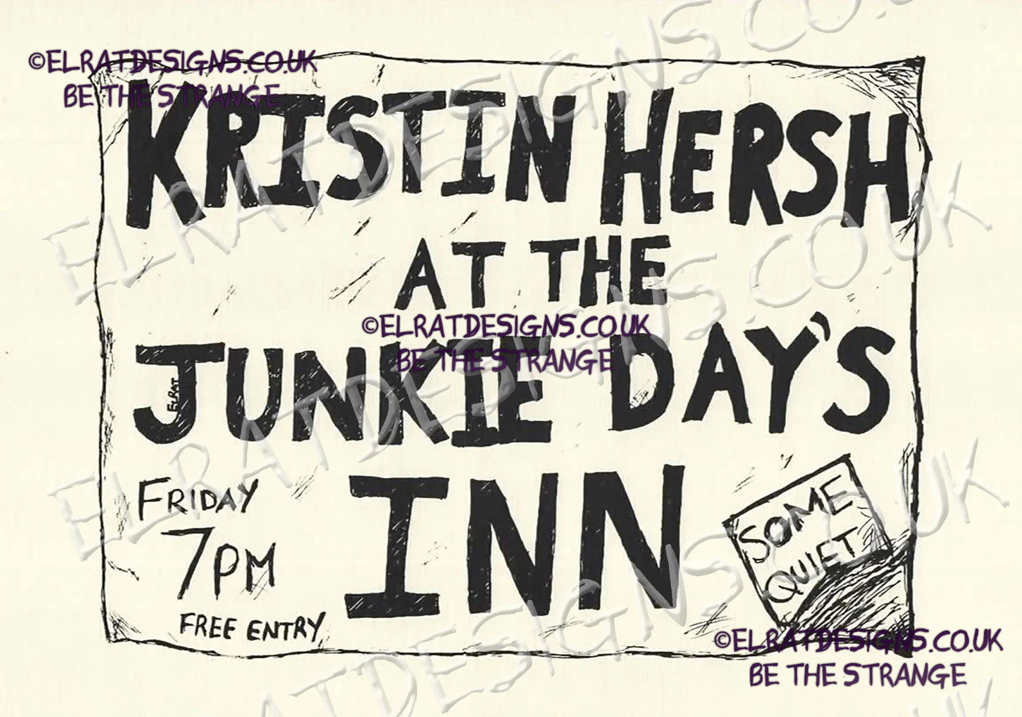 I have very much fallen in love with 'Clear Pond Road', and 'Palmetto' is a song that won't stay out of my head... Junkie Days Inn sounds like a place you'd go see Hersh... This is an incredibly unpopular print as a T-Shirt, This was one of the original four ElRat shirts that I made for KH, right back when ElRat Designs first started. It has sold maybe three shirts in that time, I find this hilarious, I have said before, more than once, that I only make T-Shirts for myself, and stand by it as a great print. Maybe its the art, maybe people just aren't as into that song as much as I am. Maybe it'll be more popular as an art print than a t-shirt! Either way, nothing has changed in my mind, I still I absolutely love the song, and the shirt... and now the print... in the end, that's the only part of the equation that matters. Personally approved by The One Kristin Hersh, and only available from ElRat Designs. Available now as a print, also available on a T-Shirt
