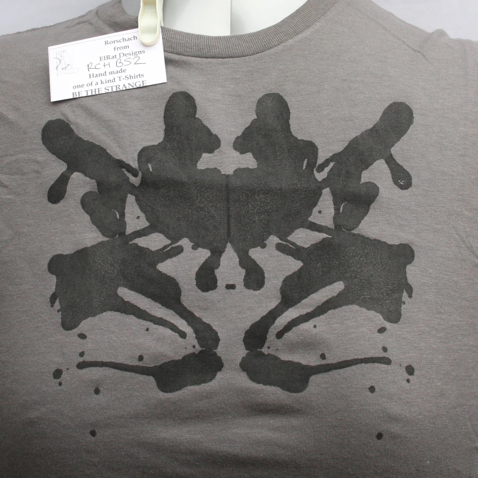 Many years ago I made myself a Rorschach T-shirt, I loved it, it sparked many interesting conversations but it was a pain to make, so for a long long time I was wondering how I could recreate this for other people. I finally cracked it . This is a genuine one-off ElRat Designs Rorschach ink blot t-shirt - there will never be another one exactly like this. Not screen printed, I use specially made foldable screens and let the ink create its own pattern, just like the original Rorschach test. What you see in the blot is a view into your mind - Everyone sees something, for some it's butterflies, others see faces, some see abstract shapes. In mine, I saw Walter White from Breaking bad, I made one for my kid, and it was a crab wearing a gas mask. There's no right or wrong answer.