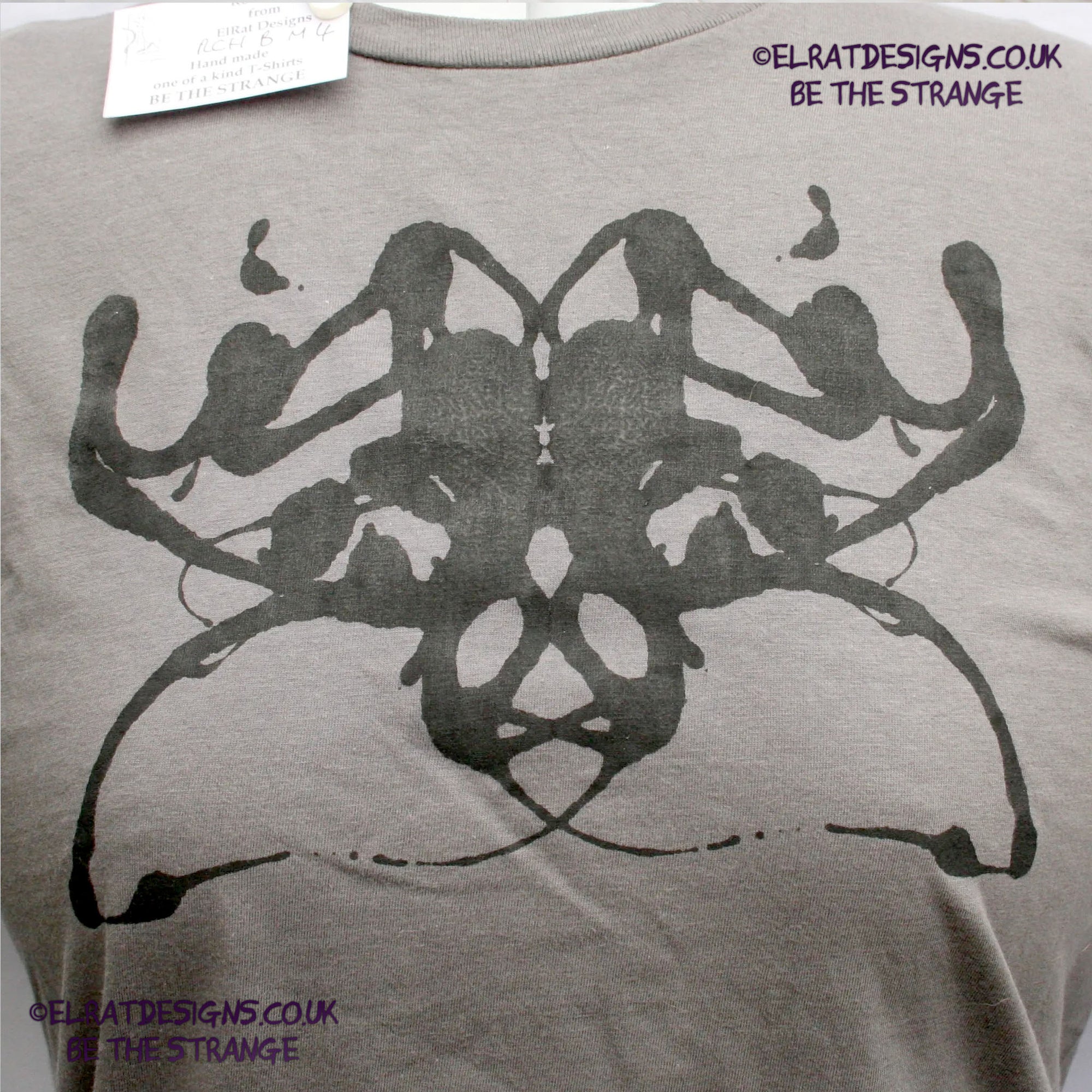 Many years ago I made myself a Rorschach T-shirt, I loved it, it sparked many interesting conversations but it was a pain to make, so for a long long time I was wondering how I could recreate this for other people. I finally cracked it . This is a genuine one-off ElRat Designs Rorschach ink blot t-shirt - there will never be another one exactly like this. Not screen printed, I use specially made foldable screens and let the ink create its own pattern, just like the original Rorschach test. What you see in the blot is a view into your mind - Everyone sees something, for some it's butterflies, others see faces, some see abstract shapes. In mine, I saw Walter White from Breaking bad, I made one for my kid, and it was a crab wearing a gas mask. There's no right or wrong answer.