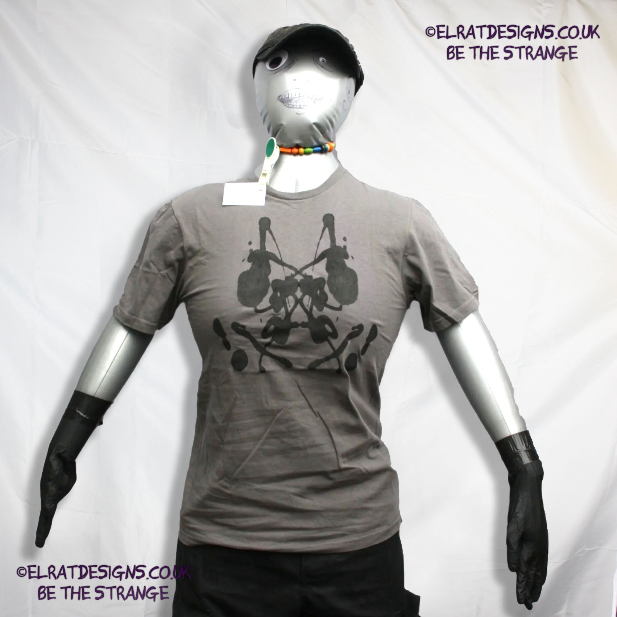 Many years ago I made myself a Rorschach T-shirt, I loved it, it sparked many interesting conversations but it was a pain to make, so for a long long time I was wondering how I could recreate this for other people. I finally cracked it . This is a genuine one-off ElRat Designs Rorschach ink blot t-shirt - there will never be another one exactly like this. Not screen printed, I use specially made foldable screens and let the ink create its own pattern, just like the original Rorschach test. What you see in the blot is a view into your mind - Everyone sees something, for some it's butterflies, others see faces, some see abstract shapes. In mine, I saw Walter White from Breaking bad, I made one for my kid, and it was a crab wearing a gas mask. There's no right or wrong answer.