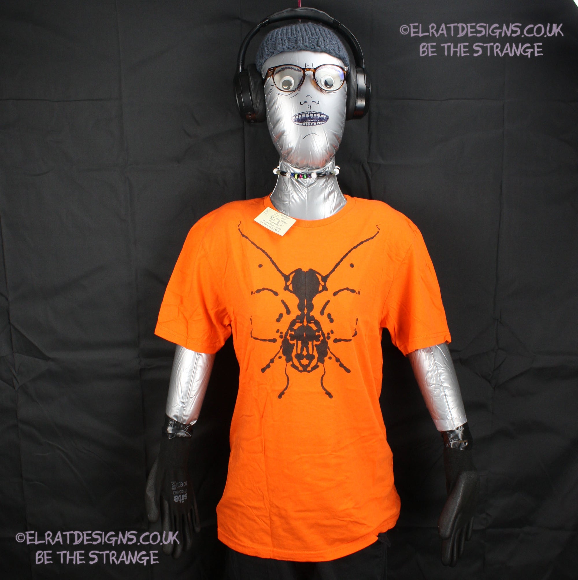 Rorschach Orange Cotton T-Shirt with Black Ink Blot - Small #1 (RO B S1) | ElRat Designs