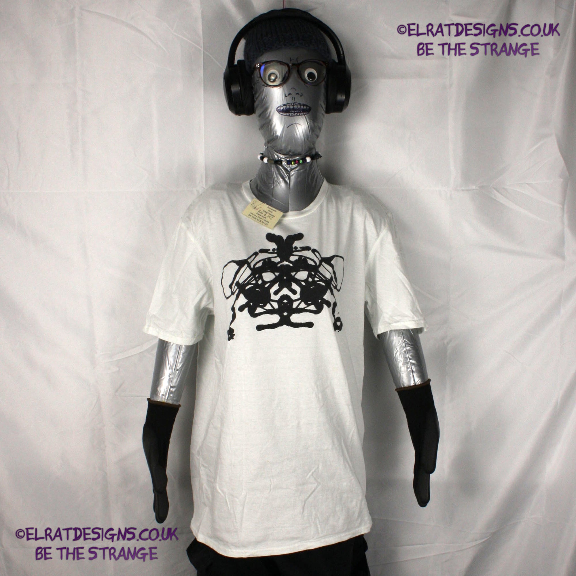 Many years ago I made myself a Rorschach T-shirt, I loved it, it sparked many interesting conversations but it was a pain to make, so for a long long time I was wondering how I could recreate this for other people. I finally cracked it . This is a genuine one-off ElRat Designs Rorschach ink blot t-shirt - there will never be another one exactly like this. Not screen printed, I use specially made foldable screens and let the ink create its own pattern, just like the original Rorschach test. What you see in the blot is a view into your mind - Everyone sees something, for some it's butterflies, others see faces, some see abstract shapes. In mine, I saw Walter White from Breaking bad, I made one for my kid, and it was a crab wearing a gas mask. There's no right or wrong answer.