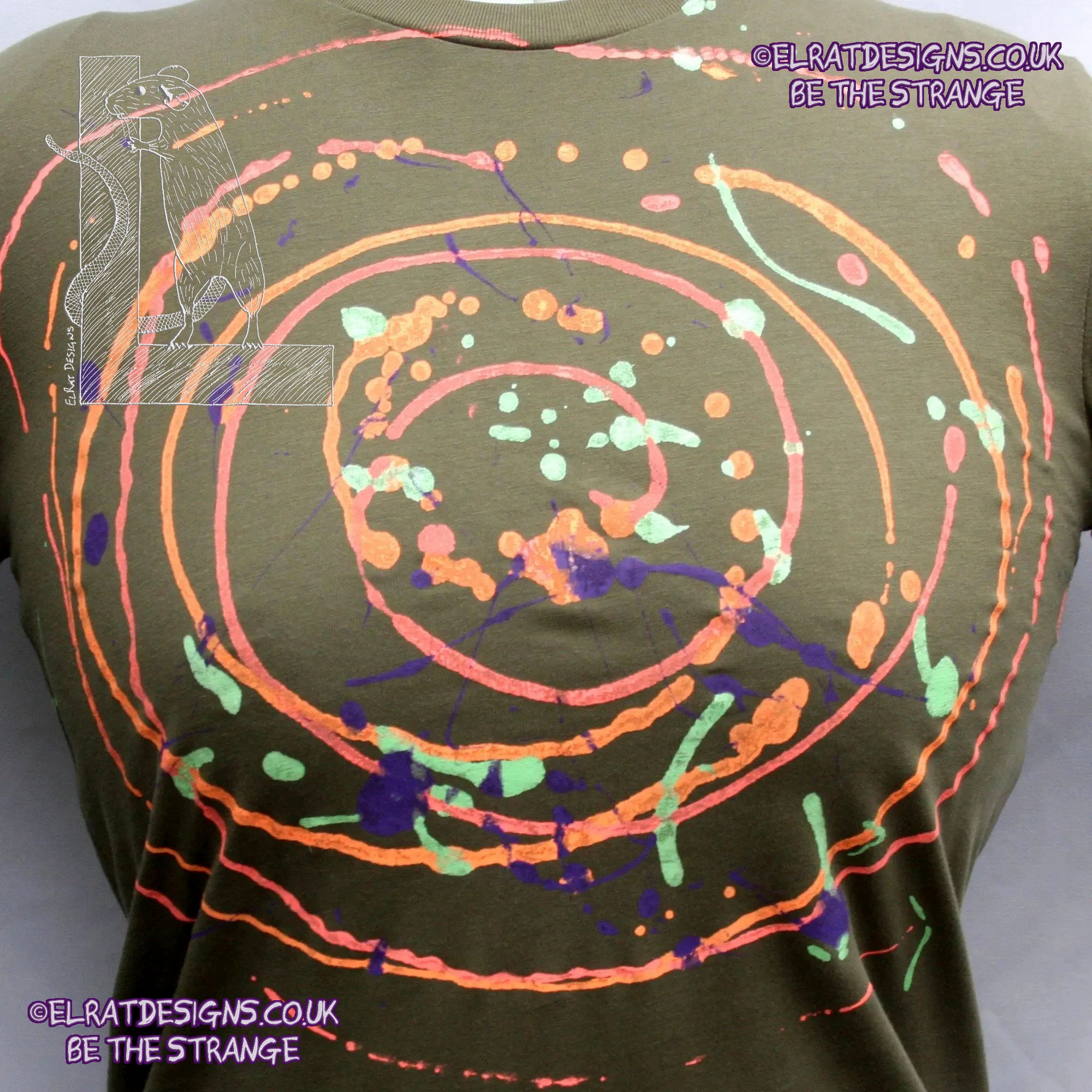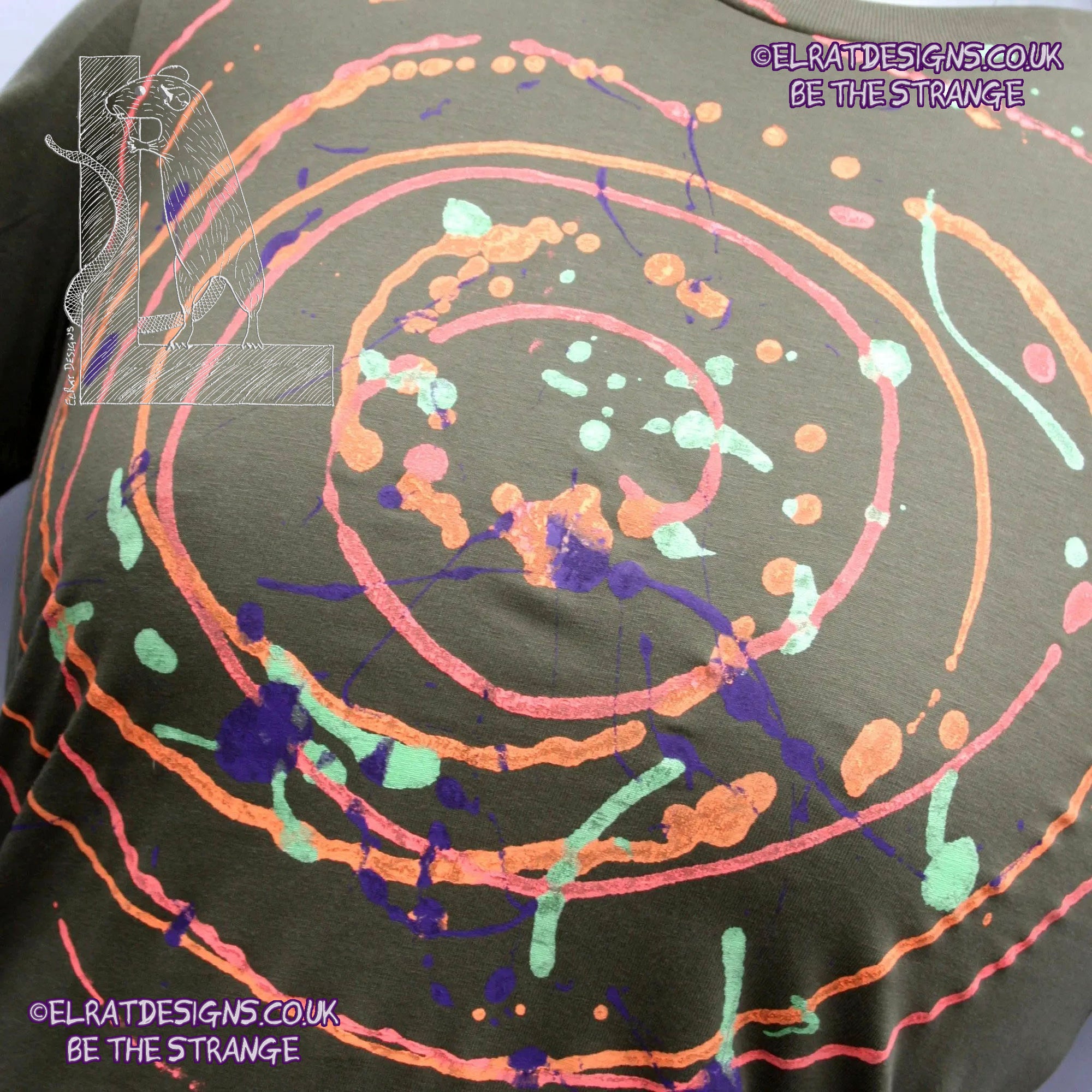 Spiral Splatter Print - Hand printed art shirt - Khaki Xtra Small MP-Kh-XS1 | ElRat Designs