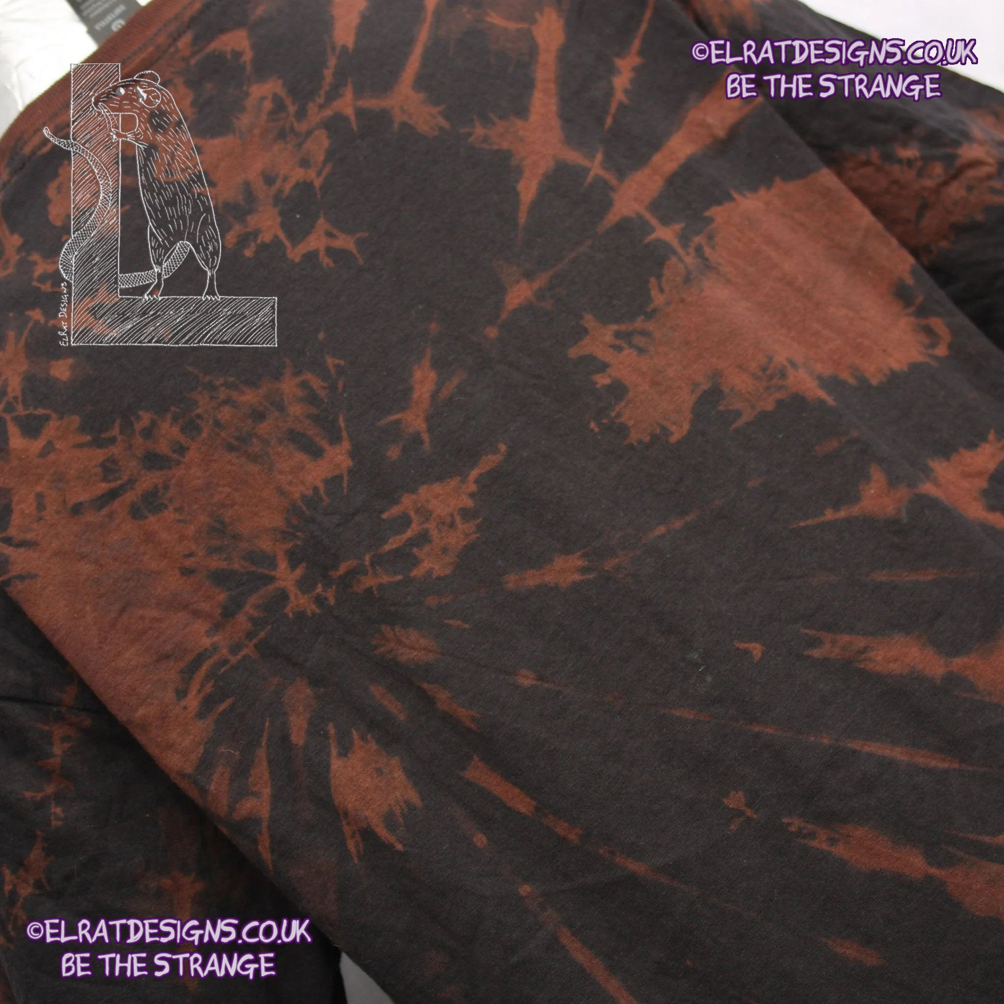 So, this is the Flushed Edition, hand printed, hand tied and bleached by my own fair hands, each one is completely unique - this is the actual shirt you are buying, so please check the photos.